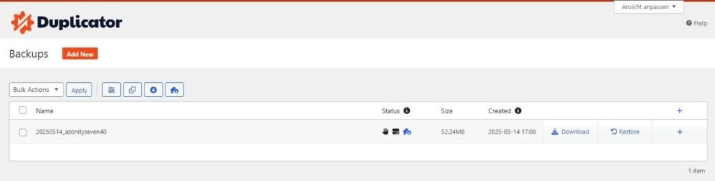 Du kannst auch noch folgende Punkte mit den BackUps und dem PlugIn Duplicator Pro machen: